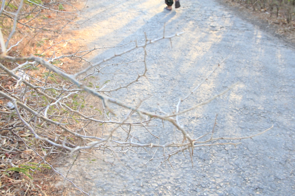 Kemudian saya diajak untuk turun ke bawah. Jadi, di bawah tebing ini, ada semacam batu-batu karang yang cukup banyak dan eksotis. Memang terdapat jalan setapak. Tapi dipenuhi ilalang yang tumbuh dengan padat. Jadi, jalan pun harus hati-hati. Di bawah, lebih banyak lagi tanaman kaktus. Tapi sayang, orang-orang yang iseng tidak bertanggungjawab menulis-nulis di daun-daun kaktus. Merusak keindahan!